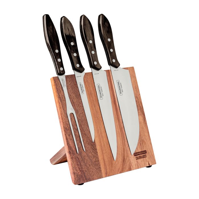 KNIFE BLOCK TRAMON 5PCE BBQ BRN BIL MOQ2