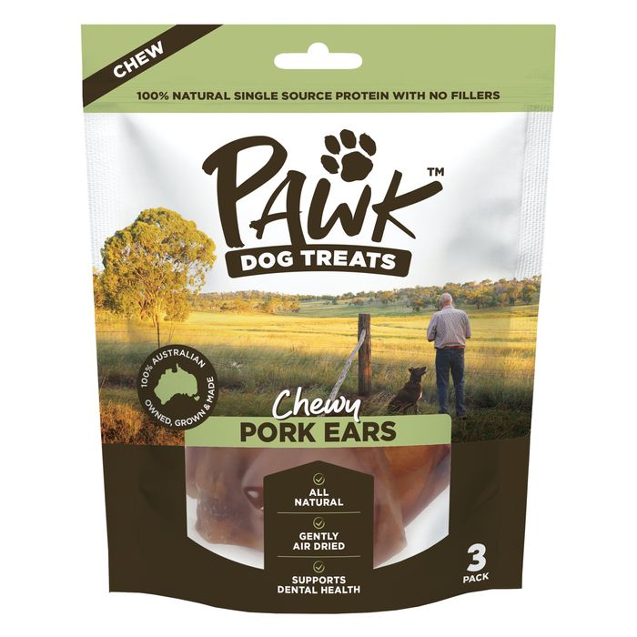 PET DOG TREAT PAWK PORK EAR 10PKS OF 3